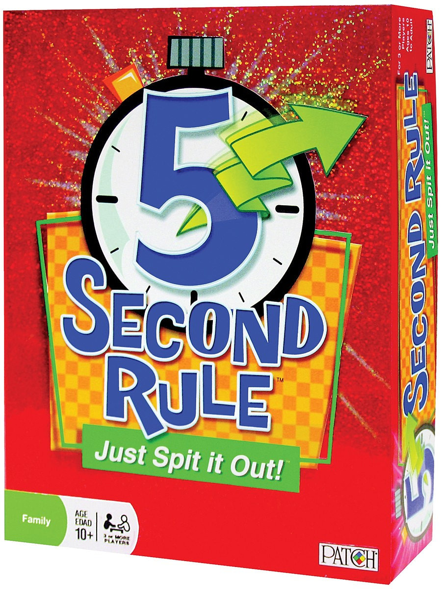 GAME DESCRIPTION: 5 Second Rule is a high speed card game published by Broadway Toys LTD for 3 or more players. Players take turns trying to list a certain amount of objects before time runs out.